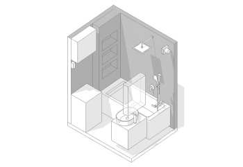 Основные пожелания клиента: выполнить дизайн-проект ванной комнаты в холодных тонах, встроенная душевая система, мебель индивидуального изготовления.