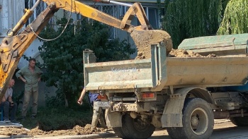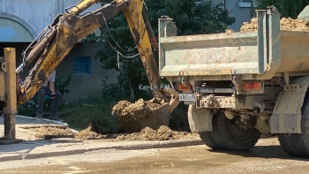 В Керчи 29 июля около многоэтажки на улице Ворошилова, 37 произошел порыв водовода. На место быстро приехали сотрудники водоканала. Для устранения течи они разрыли газон, - передает  Керчь.ФМ.