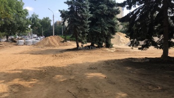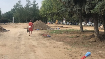 На объекте присутствует всего несколько рабочих, тех темпов благоустройства, которые были здесь прошлые недели пока нет.