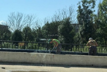 В Керчи второй день подряд на Партизанском мосту многолюдно - рабочие приводят в порядок территорию, - передает Керчь.ФМ.