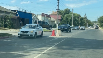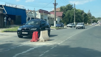 В Керчи на улице Чкалова «залатали» яму на дороге. Место работ оградили пластиковыми барьерами. Водителям стоит быть аккуратнее на данном участке дороги, - передает  Керчь.ФМ.