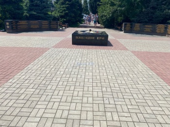 Сегодня, 12 августа, в сквере чистота и порядок. Вечный огонь работает, все буквы и цифры на месте.