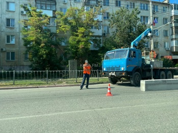 В Керчи на ул. Свердлова, в районе остановки Босфорский идут работы. Из-за этого часть дороги оградили бетонными блоками, - передает Керчь.ФМ.