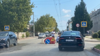 В Керчи на улице Свердлова, на проезжей части провалилась дорога. Стоит отметить, что яма глубокая, - передает Керчь.ФМ.