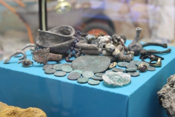 На выставке представлены находки последних лет: керамика и гончарный круг, боспорские и римские монеты, римский меч — «гладиус», лапидарные памятники, а также клад жертвоприношения, спрятанный жителями крепости в момент вражеского штурма.