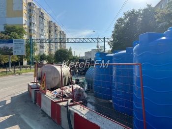 В Керчи на ул. Свердлова идет замена магистрального водовода. Из-за этого на проезжей части ранее установили бетонные блоки на проезжей части, - передает Керчь.ФМ.