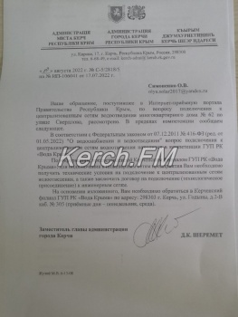 Керчане рассказали, что уже обращались с проблемой в администрацию и даже получили ответ, где им посоветовали идти в водоканал.
