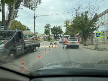 Так, в районе Семи ветров днем 25 августа продолжается обновление разметки на переходе. Из-за этого перекрыта одна полоса для движения.