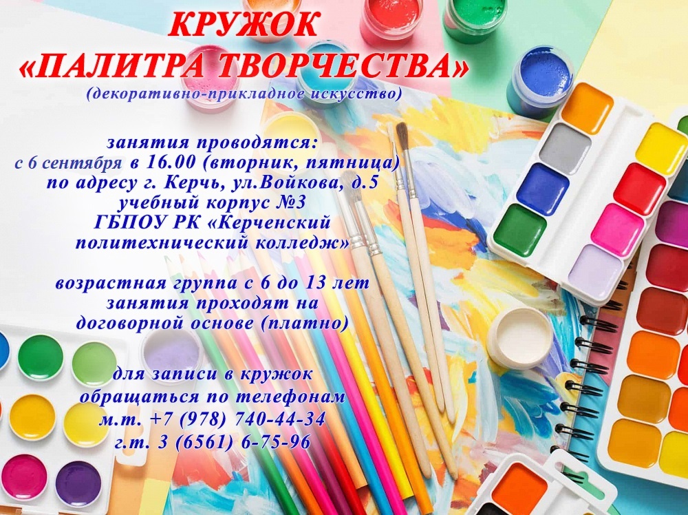 Объявляет набор в кружок «ПАЛИТРА ТВОРЧЕСТВА»