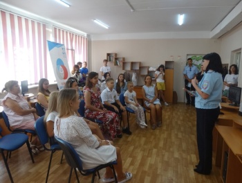 Также на мероприятии присутствовала представитель кадрового аппарата УМВД. С целью популяризации профессии полицейского специалист отделения кадров отдела по работе с личным составом Наталия Лукьяненко провела для родителей и детей профориентационный ликбез на тему: «Я б в полицию пошел. Пусть меня научат!». Наталия Валериевна отметила, что рано или поздно каждый школьник сталкивается с вопросом «Кем я хочу быть?». Так как разобраться в себе и понять, что интересно, а что - не очень, порой, бывает сложно, профориентационные беседы способны помочь ребенку разобраться в своих предпочтениях и решить, куда двигаться дальше. В связи с этим представитель кадрового подразделения рассказала присутствующим о возможности получения профильного юридического образования в Краснодарском университете МВД России и его Крымском филиале, а также о преимуществах прохождения службы в рядах сотрудников органов внутренних дел.