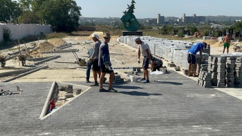 Укладывают плитку, работы идут активно. Специалистам предстоит еще установить светильники и высадить деревья, - передает  Керчь.ФМ.