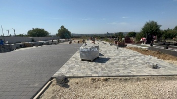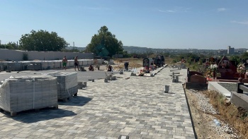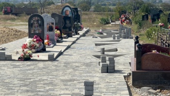 В Керчи продолжается благоустройство площади у мемориала погибшим в политехническом колледже на городском кладбище. Рабочие