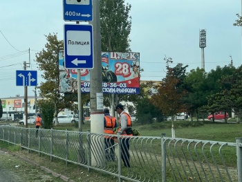 В Керчи продолжают бороться с травой вдоль дорог