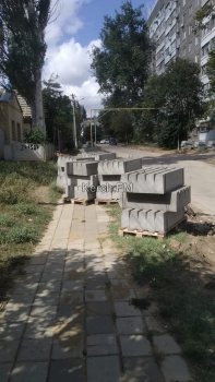 В Керчи в переулке Корабельном пешеходы не могут нормально пройти по тротуару: рабочие выгрузили бордюры прямо посреди пешеходной дорожки. Об этом Керчь.ФМ сообщили постоянные читатели