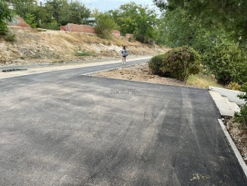 Так, рабочие уложили асфальт на пешеходные дорожки и площадку перед спуском в саму школу. Дорогу по Олега Кошевого все ещё не начали ремонтировать.