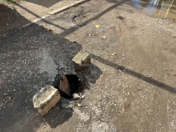 Читатели отметили, что во время дождя вся вода уходила именно в этот провал, еще сильнее размывая оставшуюся дорогу.