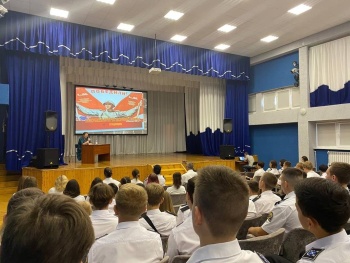 С лекцией на тему «77-я годовщина окончания Второй мировой войны», перед студентами и курсантами выступила Валентина Климчук, старший научный сотрудник отдела Великой Отечественной войны Восточно-Крымского историко-культурного музея-заповедника. Первокурсники познакомились с интересными историческими фактами и посмотрели исторический короткометражный документальный фильм.