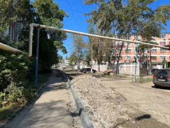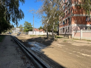 Рабочие уже вдоль проезжей части установили новые бордюры.