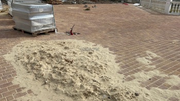 Осталось уложить еще слой асфальта на один проезд вдоль Бульвара. Также на клубмбы завезли свежий грунт. В порядок приводят и щебень, которым ранее засыпали территорию площадки, где установлены тренажеры.