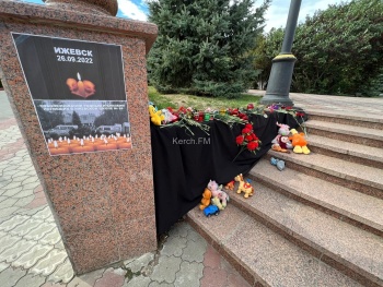 Керчане 26 сентября почтили память погибших в Ижевске. Горожане принесли к импровизированному мемориалу у площади Ленина цветы и мягкие игрушки, - передает Керчь.ФМ.