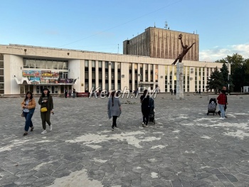 Но, уже на площадь перед дворцом культуры привезли старые отреставрированные лавочки, покрашенные в красный. Их пока просто поставили перед центральным входом, но керчане сразу решили отдыхать на них.