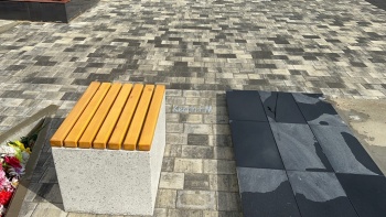 В Керчи продолжается благоустройство площади у мемориала погибшим в политехническом колледже на городском кладбище. Рабочие уже уложили плитку, установили скамейки и сделали освещение. С одной стороны территорию оградили забором.