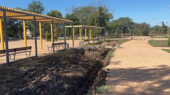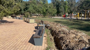 В Керчи в парковой зоне им. Ю. Гагарина 19 сентября продолжаются работы по благоустройству территории. В вырытые траншеи еще не уложили проводку, они так и продолжают создавать опасность для отдыхающих в парке. На 29 сентября специалисты монтируют новые навесы на детской площадке. Больше никаких работ не ведется, - передает Керчь.ФМ.