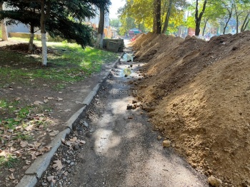 В Керчи продолжается, уже кажущаяся бесконечной, замена магистрального водовода. Из-за работ за остановкой «Институт» оказался перерыт тротуар и подход к остановке. Рядом насыпана большая куча земли, - передает Керчь.ФМ.