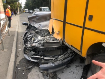 В результате дорожно-транспортного происшествия пострадал водитель автомобиля «Киа Рио», 1984 года рождения. Автобус был без пассажиров. На месте аварии работал наряд ГИБДД.