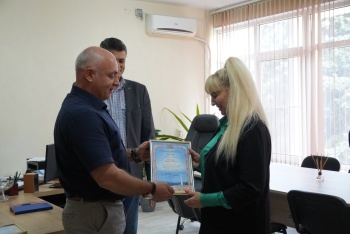 Первый заместитель главы администрации Олег ШЕВЧЕНКО вручил благодарственные письма начальнику штаба ГО железнодорожной станции Керчь ФГУП «КЖД» Ларисе ВЯТКИНОЙ и инженеру по ГОиПБ филиал АО «КРЫМТЭЦ» «Камыш-Бурунская ТЭЦ» Андрею ДЕНИСЕНКО.