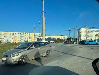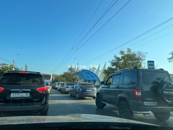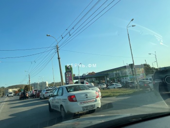 В Керчи 8 октября на заправках выстроились огромные очереди. Из-за машин затруднено движение, автобусы останавливаются посреди дороги для высадки пассажиров