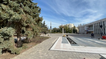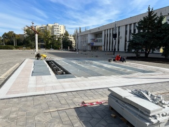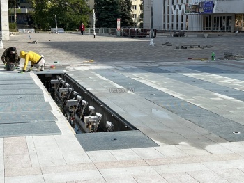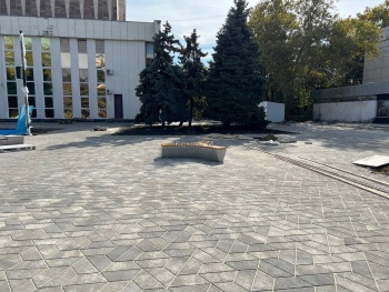 В Керчи у ДК «Корабел» подходит к завершению благоустройство. Так, активные работы идут у нового фонтана - рабочие настраивают его, уже были проведены первые пуски.