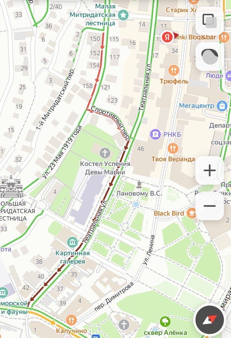 Ранее пробка образовалась на ул. Крупской, но после поток начал ехать еще и через 23 Мая и Театральную.