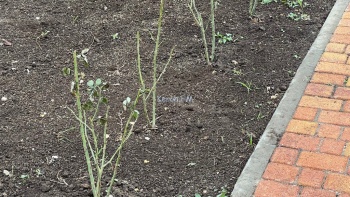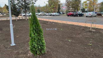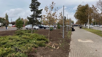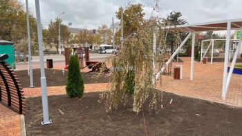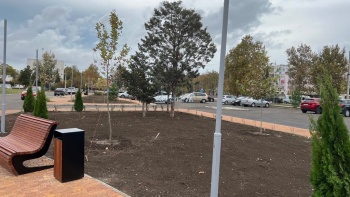 Уже высадили новые зеленые насаждения. В сквере появились березы, розы, туи, можжевельник казацкий и другие растения. Уличное освещение еще не сделали.