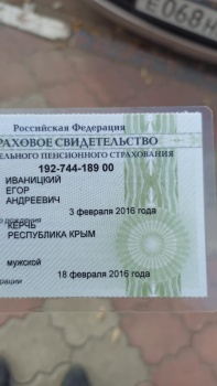 Керчане нашли пенсионное удостоверение на имя Иваницкого Егора Геннадьевича. В понедельник документ принесут в редакцию Керчь.ФМ.