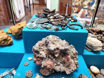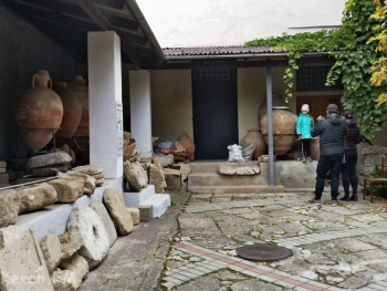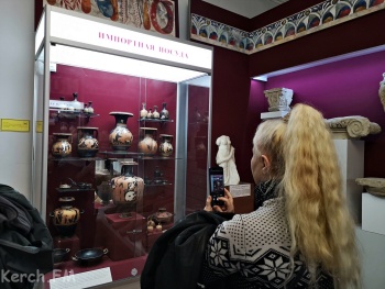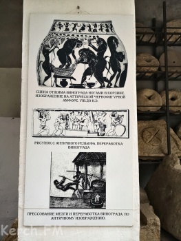 Старые и новые экспозиции демонстрировали сотрудники музея. На будущее, если предстоит посетить еще раз музей, не забудьте зайти внутренний дворик. Там часть посвящена виноделию, приготовлению пищи древними прародителями керчан. Воспринимается все это как-то по-особенному: этим морским воздухом дышали те, кто пользовался каменными ступками, кто перегонял по каменным желобам молодое вино, кто готовил пищу себе в печи. И так же как и мы любовались осенними разноцветными листьями.