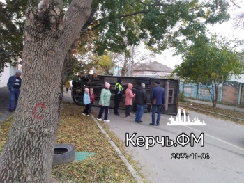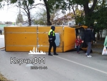 Около 15 часов на улице Островского произошло ДТП. Водитель грузового автомобиля не пропустил движущийся по главной дороге транспорт и допустил столкновение. От удара маршрутка въехала в дерево и перевернулась, - передает Керчь.ФМ.
