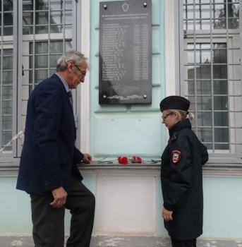Завершилось памятное мероприятие возложением цветов к мемориальной доске у административного здания Управления МВД России по г. Керчи в память о погибших при выполнении служебного долга сотрудниках.