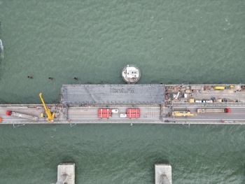 «Работы по восстановлению моста ведутся в соответствии с графиком. Сегодня досрочно была завершена операция по поперечной задвижке пролетного строения. Оно было собрано на производственной базе эксплуатации, погружено на передаточные модули и доставлено в место монтажа. После чего произведена поперечная задвижка и в ближайшие дни произойдет опускание в проектное положение. Нам предстоит смонтировать еще три пролета, после чего мы заасфальтируем проезжую часть и запустим рабочее движение по правой части Крымского моста», - сообщил главный инженер ФКУ Упрдор «Тамань» Никита Храпов.