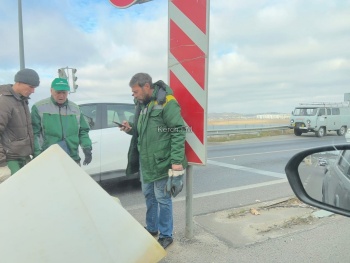 В Керчи с утра 14 ноября на путепроводе по Шоссе Героев Сталинграда появились рабочие. Они собирается заменить пластиковые конусы перед началом отбойников на путепроводе, - передает Керчь.ФМ.
