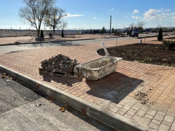 У балюстрады произошло зонирование территории. В дальнейшем здесь появятся лавочки.