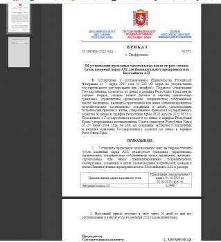 Стоит отметить, что на сайте Госкомцен информации по определению максимальной цены на топливо для Крыма и Керчи в частности ничего нет. Последнее упоминание было в 2019 году. Тогда по Госкомцен установил предельные тарифы для симферопольского продавца «Евроэкоэнерджи»: — уголь каменный марки АКО - 11 158 рублей за 1 тонну;