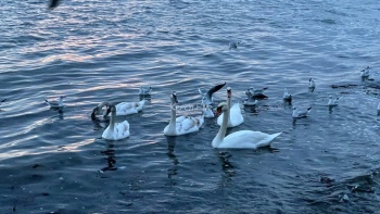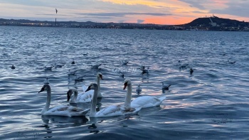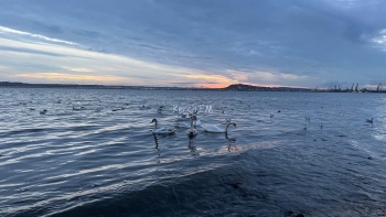 Лебеди на пляже в Керчи – фото и видео от читательницы
