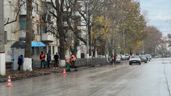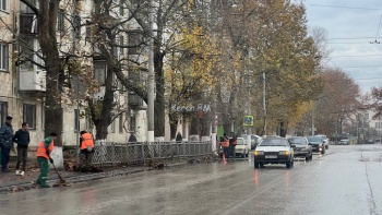 В Керчи, 25 ноября по улице Горького, осужденные убирали листву с газонов и дорог. На данной улице уже вторую неделю борются с опавшей листвой.