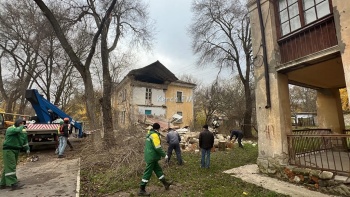 В Керчи 29 ноября, с утра, коммунальщики приступили к разбору обрушившейся части дома на Суворова, 12. Напомним, вчера здесь обвалилась часть двухэтажного дома, где расположены балконы. К счастью, никто не пострадал, - передает Керчь.ФМ.