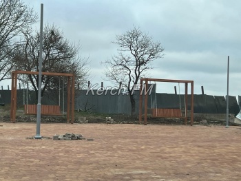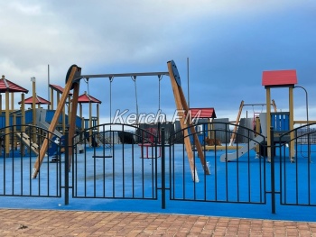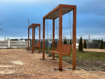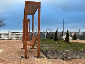 У балюстрады установили новые скамейки и подвесные качели, которые раскачивает пока только ветер.