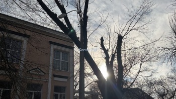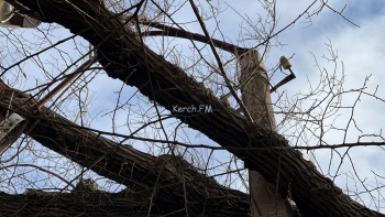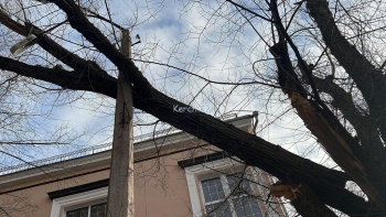 В Керчи на улице Суворова над парковкой огромная ветка дерева повисла на опоре освещения, - передает Керчь.ФМ.