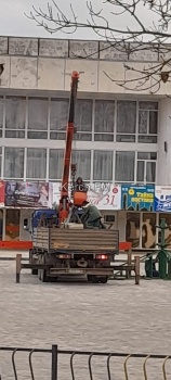 В Керчи 6 декабря у Дворца Культуры «Корабел» приступили к установки новогодней елки. Сюда уже завезли основание, которые прижимают бетонными блоками, - передает Керчь.ФМ.