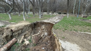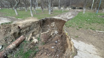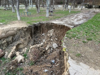 Из-за этого обвалилась еще одна часть дороги, которая вела к зоне отдыха к морю. Оползень растет с каждыми осадками, и люди боятся, что такими темпами к началу сезона от зоны отдыха ничего не останется.
