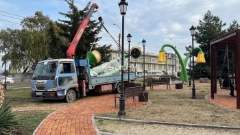 В Керчи в сквере напротив Кирова, 5 устанавливают новые огромные светильники. Они имеют форму подсолнуха. Всего установят четыре штуки, они будут светиться, - передает Керчь.ФМ